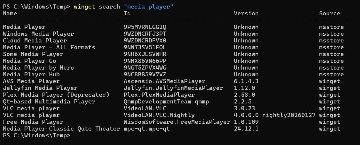 Akik nem idegenkednek tőle, a parancssoros WinGet is kiváló megoldás a hiányzó szoftverek beszerzésére. A Linuxot használók számára ismerős: egyetlen paranccsal telepíthető a kívánt szoftver az alap vagy az utólag hozzáadott repository-k valamelyikéből. A Linuxosok nagy kedvence az Apt, a Yum vagy a Snap.
