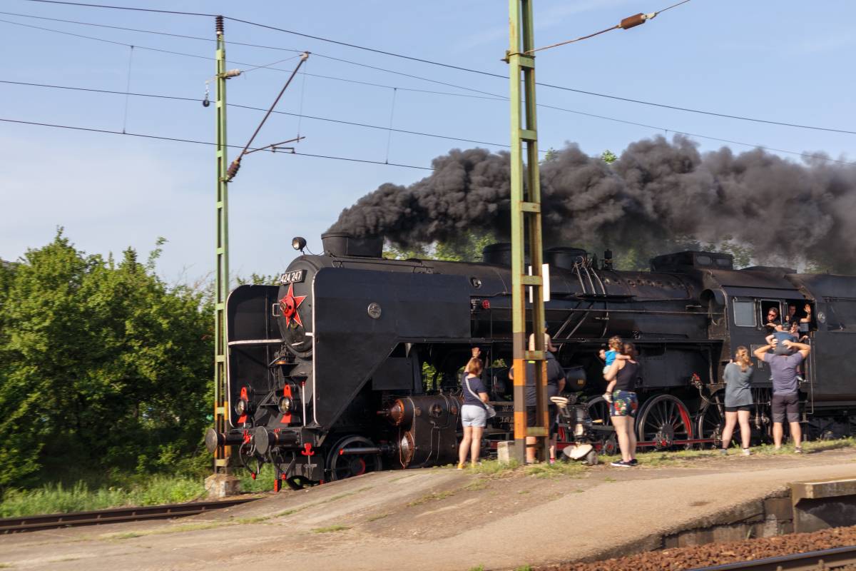 A MÁV rendszeresen indít nosztalgiajáratokat régi, működőképes állapotban tartott járműveivel. A 424-es sorozatú gőzmozdonyt és az általa vontatott szerelvényt Gyömrőn fotóztuk május elején.
