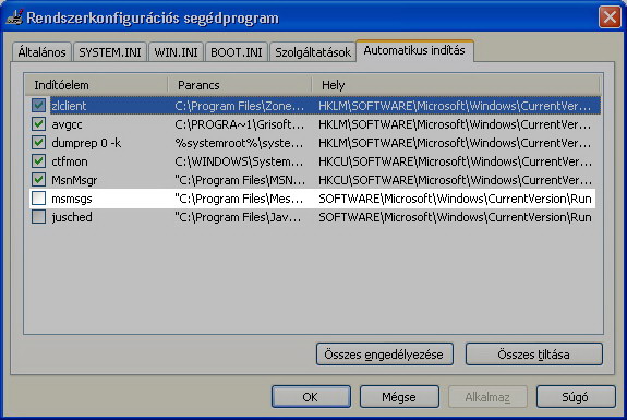 Ehhez a Rendszerkonfigurációs segédprogramra lesz szükségünk, a Start menü Futtatás parancsába Ãrjuk be: msconfig. Miután elindult az alkalmazás, válasszuk ki az Automatikus indÃtás fület!