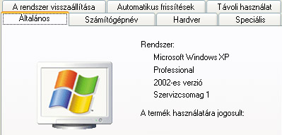 - A Rendszer: alatt a Windows verziószáma, kiadása olvasható, alatta pedig a javÃtócsomag (persze ha van): Szervizcsomag 1 vagy Szervizcsomag 2. Ha ilyen nincs, akkor egyik sincs telepÃtve a gépre, elÅbb ezt kell beszereznünk