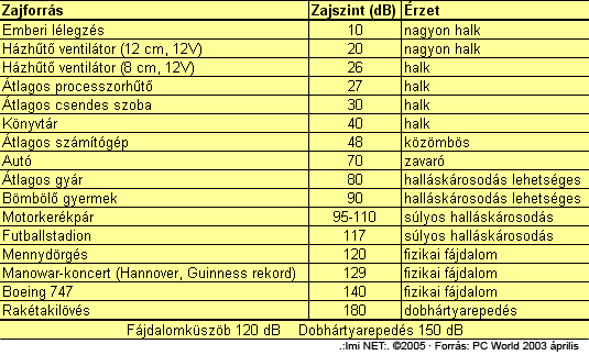 Ãttekintésként nézzük meg, hogy az egyes zajértékek milyen érzetet váltanak ki. Hisz hűtés vásárlásakor a hűtÅre ráÃrják az általa produkált zajszintet. Ennek a fizikai mértékegysége a decibel (dB).